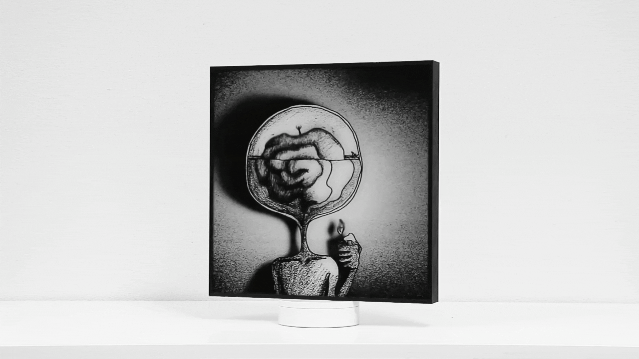 We merge digital and physical art with lenticular technology, embedding up to 56 frames and freeing digital creations from electronic constraints.